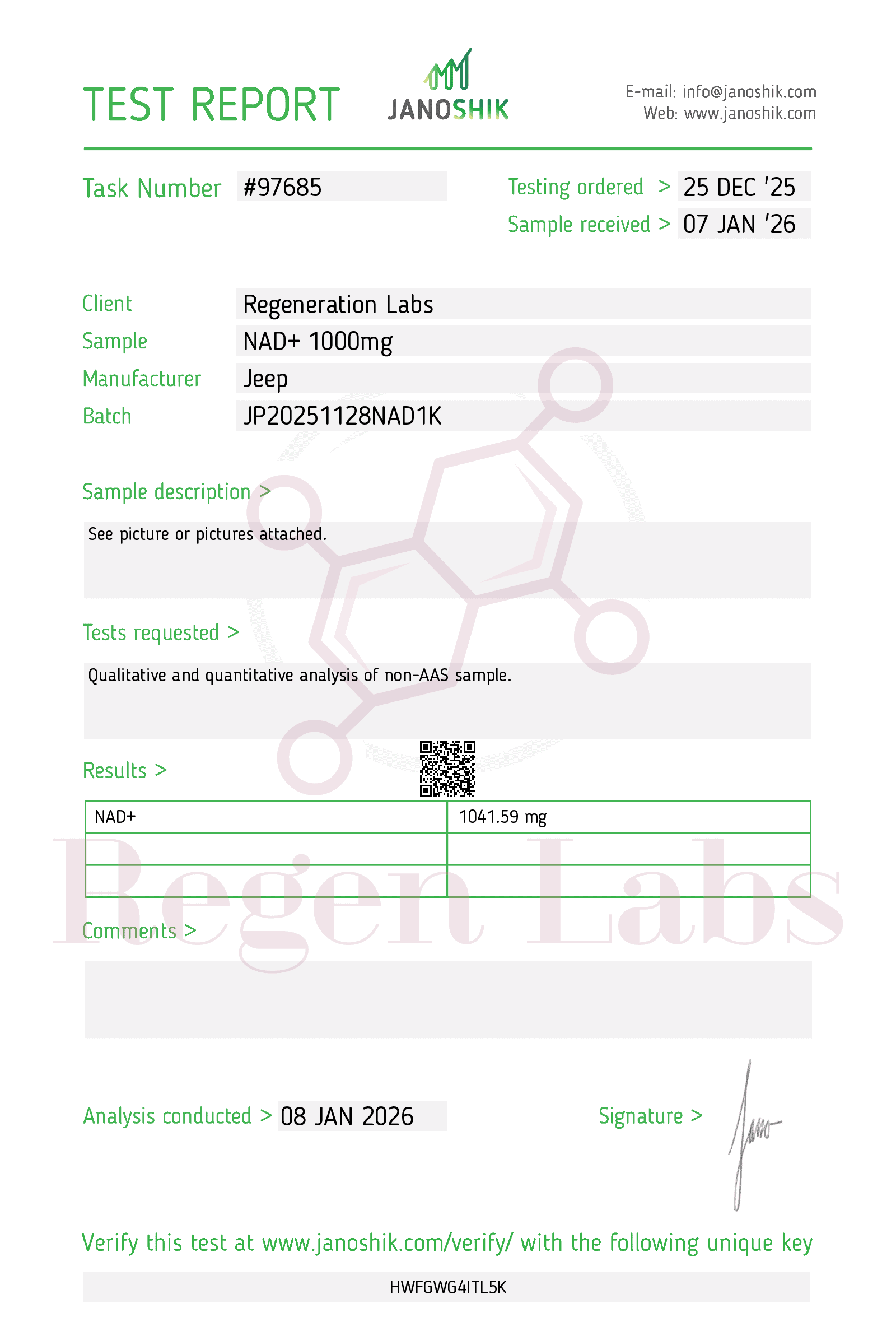 Each product is third party sample tested with a certificate of Analysis (COA) for mass.