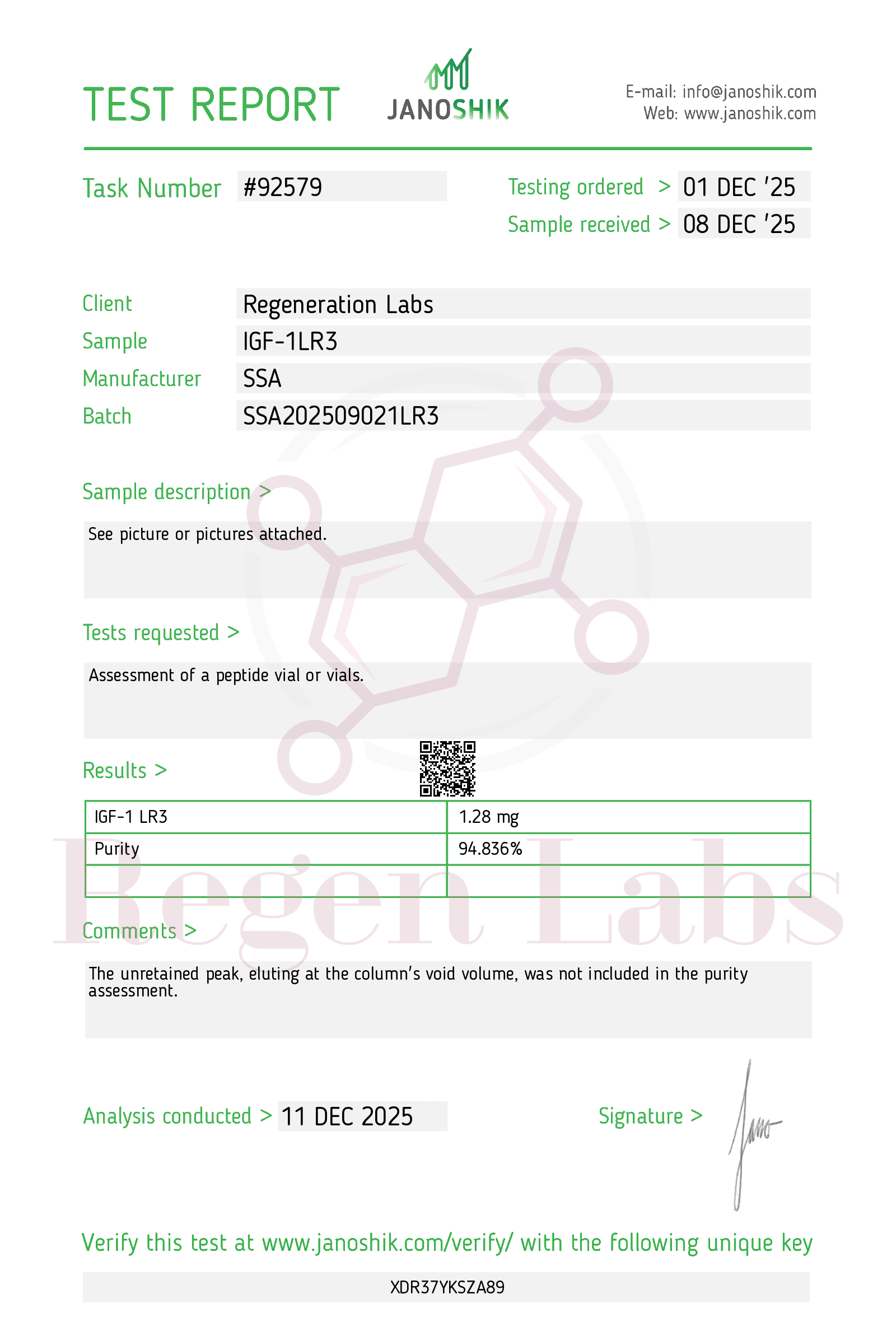 Each peptide is third party sample tested with a certificate of Analysis (COA) for mass and purity.