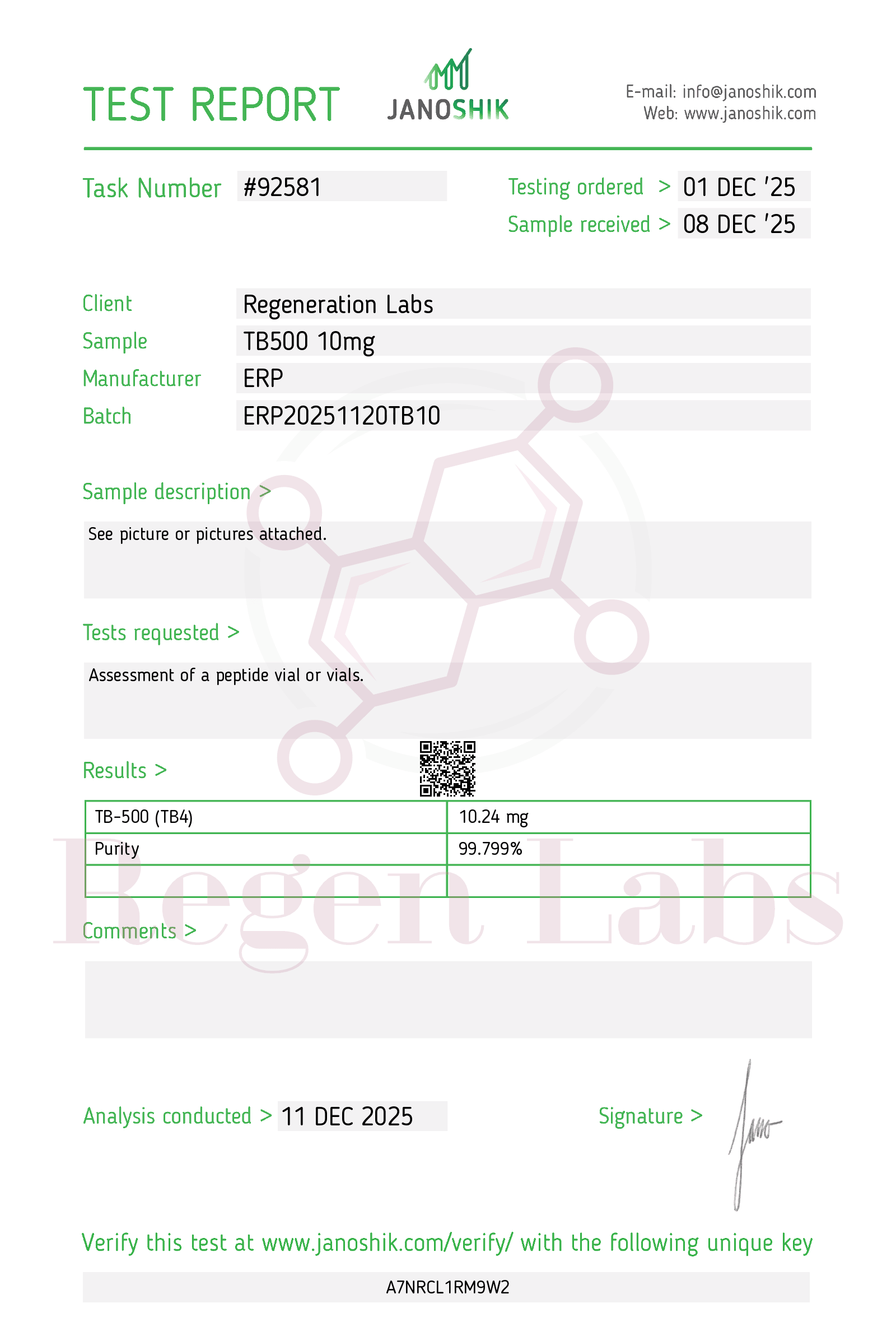 Each peptide is third party sample tested with a certificate of Analysis (COA) for mass and purity.